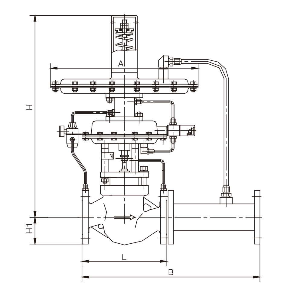 自力式帶指揮器壓力調節閥(即氮封裝置)主要用于儲罐頂部氮氣壓力恒定控制,自力式氮封閥是一種無須外來能源,以彈簧為動力核心利用被調介質自身的壓力來控制閥芯位置變化,達到自動調節和穩定壓力的目的,以保護罐內物料不被氮化及儲罐的安全。該閥由ZZYVP快速泄放閥及ZZV自力式微壓調節閥兩大部分組成??焖傩狗砰y由壓力控制器及ZMQ-16K型單座切斷閥組成。